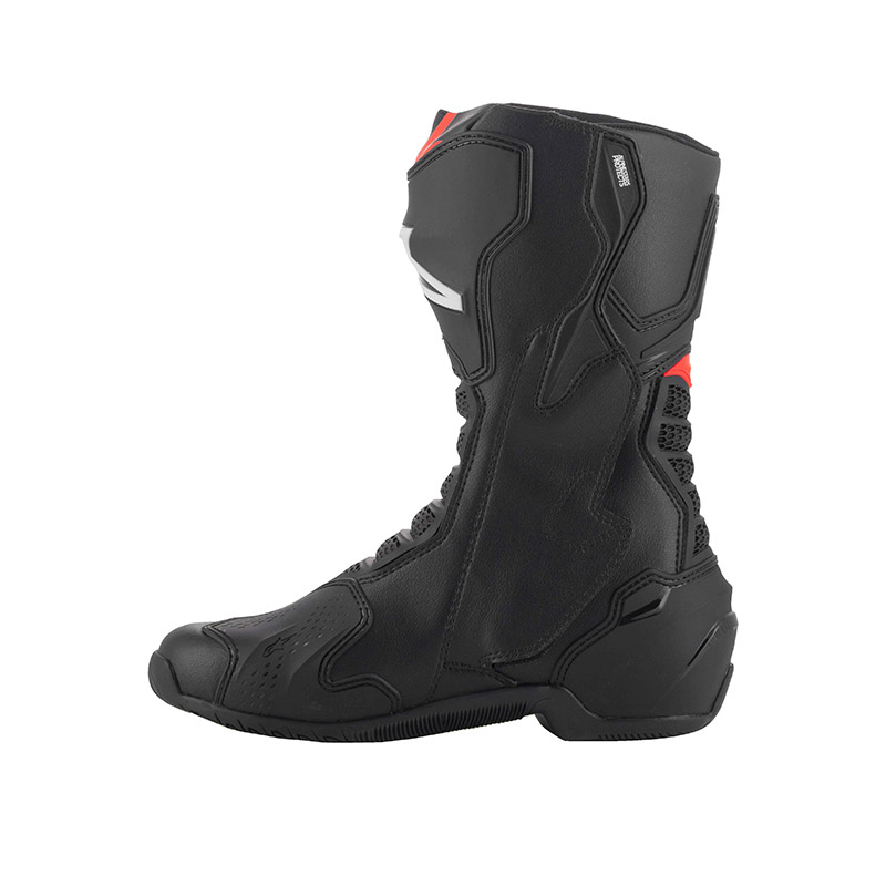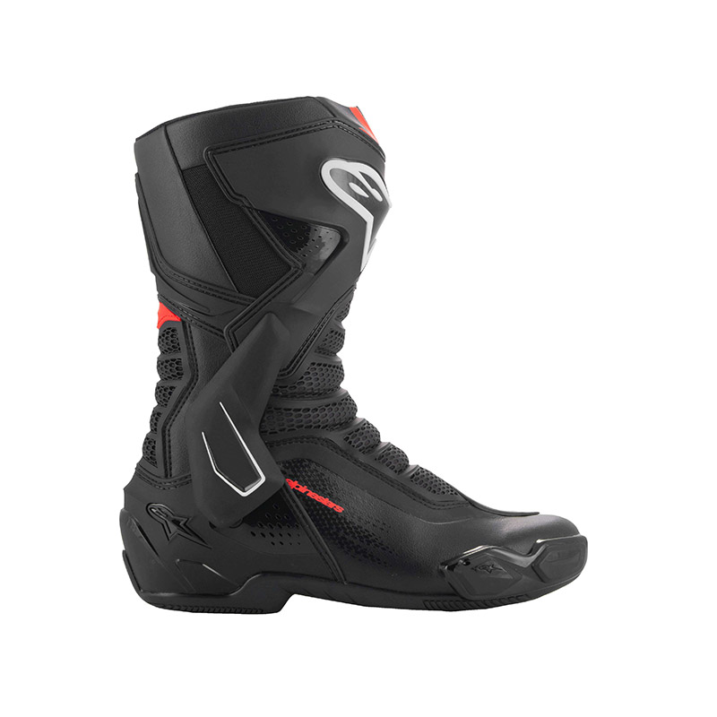 Napredna konstrukcija zgornjega dela iz mikrovlaken za lahkotno raven fleksibilnost. Nova območja upogibanja spredaj in upogibanja zadaj so izdelana iz tekstila, prekriti z mehkim TPU-jem za izboljšano gibanje in gibanje nazaj, ki spodbuja naravno gibanje naprej. Alpinestars zagotavlja biomehansko podporo in zaščito med stranskim in zgornjim delom čevlja, goleni in gležnjem, za odlično artikulacijo gležnja, hkrati pa omejuje hipertorzijo, hiperraztezanje in hiperfleksijo ter zagotavlja zaščito Ahilove tetive in gležnja pri udarcih.