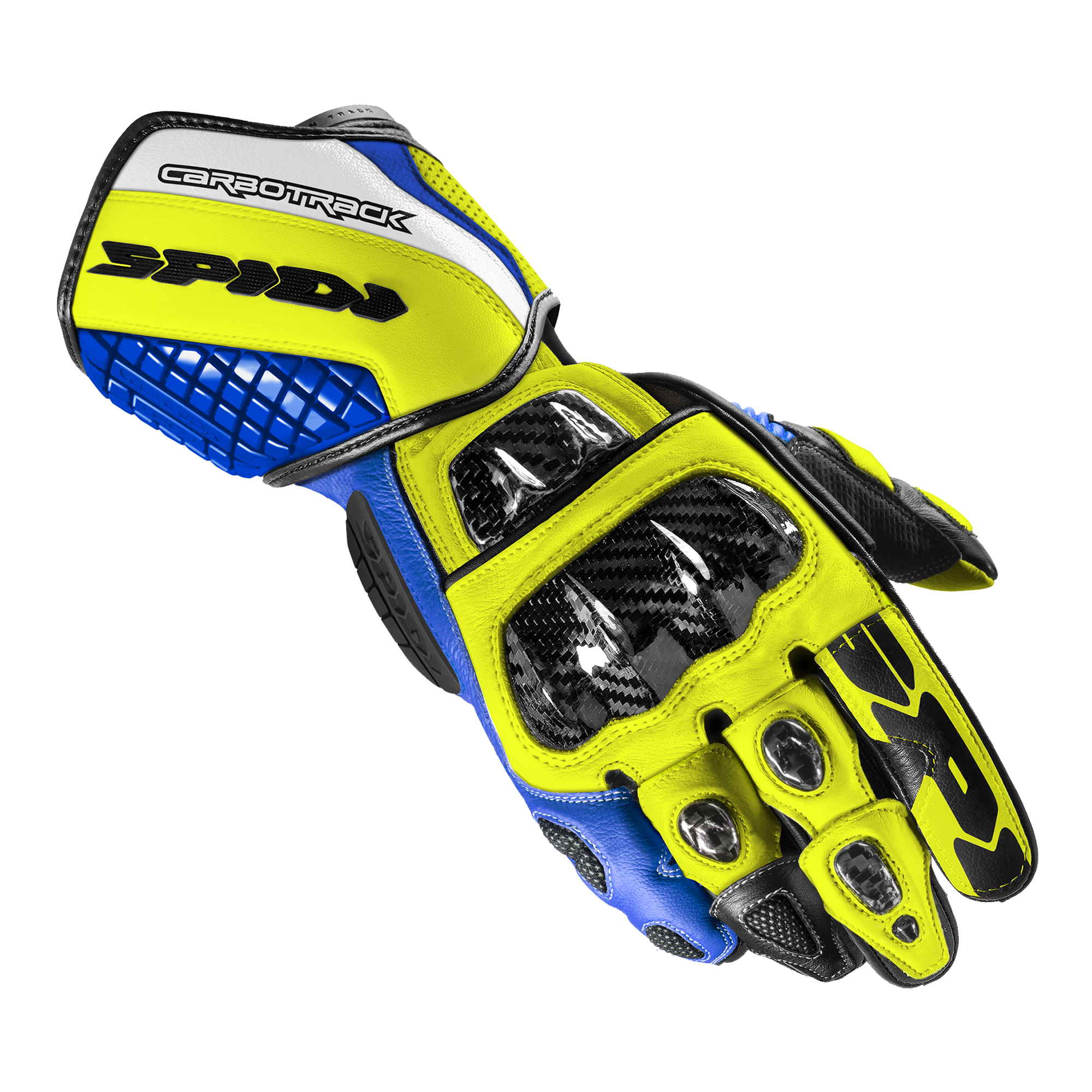 Rokavice Spidi Carbo Track EVO so nova in izboljšana različica priljubljenih rokavic Carbo Track, različica EVO vključuje testiranje EN 13594:2015 KP Lev.1 in so primerne tudi za tekmovanja. Rokavice Carbo Track EVO so izdelane iz na dirkah preverjene kombinacije visokokakovostnega govejega usnja in visoko trdnih ceramidnih ojačitev z detajli Superfabric® na prstih, na obrabo odpornimi semišnimi mikrovlakni in ščitniki za členke iz ogljikovih vlaken. Usnjeni deli rokavic so perforirani, da roke ostanejo hladne in suhe, debela manšeta na zapestju pa ohranja rokavice na mestu, ne da bi jih stiskala ali zmečkala. Hrbtni del dlani je za večjo varnost ojačan s keramidom, za zagotavljanje najboljše možne zaščite pa je povsod uporabljen oklep Warrior Tech.