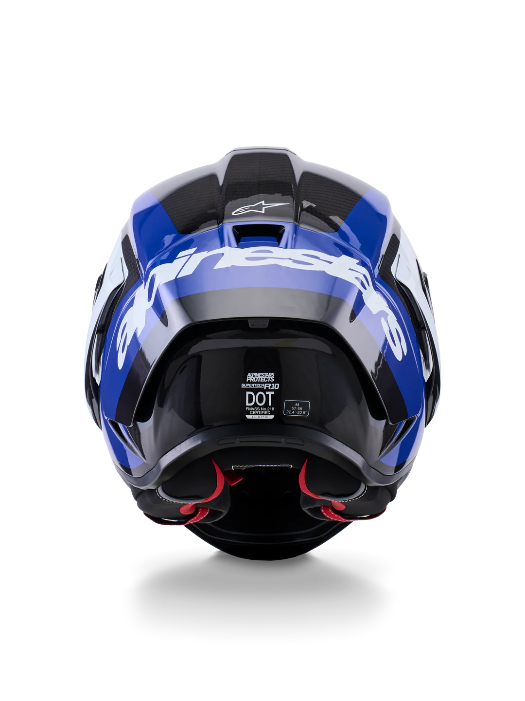 Durch die Verringerung des Luftwiderstands und die optimale aerodynamische Stabilität, die Kontrolle der Luft außerhalb und innerhalb des Helms und die komfortable und flexible Passform verbessert der S-R10 das gesamte Renn- und Sporterlebnis. Der Alpinestars Supertech R10 ist die Krönung der Alpinestars Rennhelme.