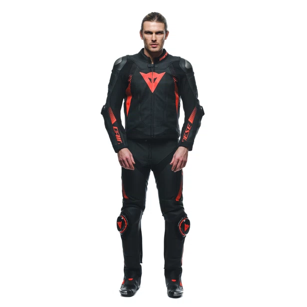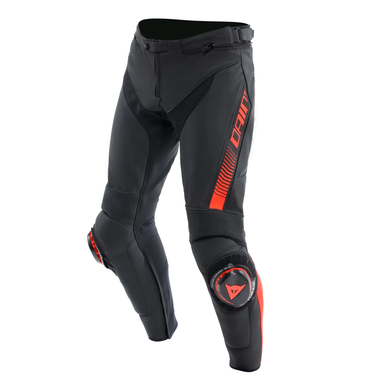 DAINESE SUPER SPEED LEATHER TROUSERS BLACK FLUO RED