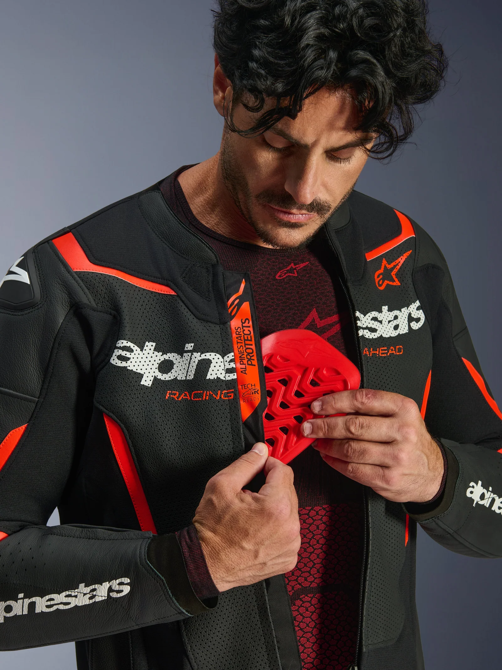 ALPINESTARS GP FORCE V2 AIRFLOW KOŽNA JAKNA CRNA FLUO CRVENA